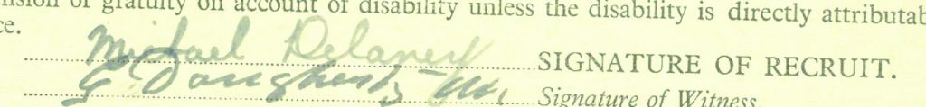From the service records of Michael Joseph Delaney, the following account can be reconstructed.